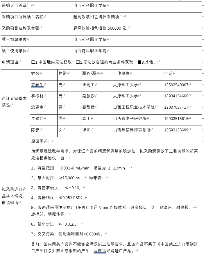 beat365官方网站超高效液相色谱仪采购项目进口产品专家论证意见公示