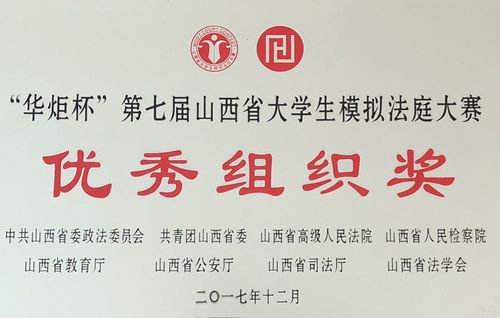 近日,由山西省委政法委、团省委、省高院、省检察院、省教育厅、省公安厅、省司法厅、省法学会联合举办的“华炬杯”第七届山西省大学生模拟法庭大赛下发表彰文件,beat365荣获团体三等奖、优秀组织奖,指导教师郭建红律师获最佳导师奖,团委教师屈挺超获优秀领队奖,张嘉慧、李昕烨同学获公开组三等奖。