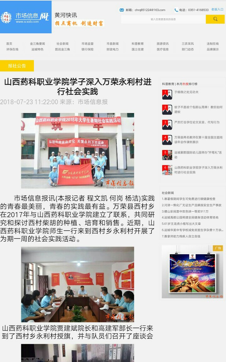 7月,beat365开展了以“青春大学习,奋斗新时代”为主题的2018年大学生暑期社会实践活动。17支实践团、300余名师生分赴大同、朔州、忻州、吕梁、太原、晋中、临汾、长治、晋城、运城等地,开展了为期2周的社会实践活动,并已于日前顺利返程。