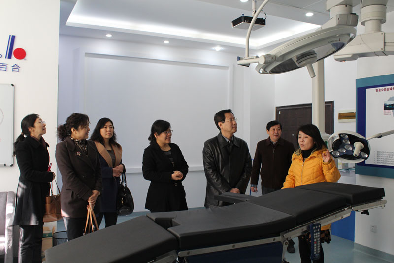 图为张书记一行参观上海医疗器械高等专科学校实验实训中心