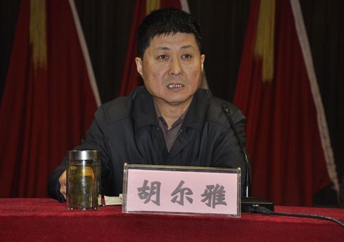 图为胡尔雅同志交流发言