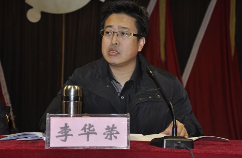 图为李华荣同志交流发言