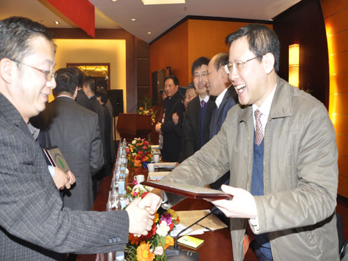 会议结束时,张瑞芳书记代表学院党委作总结讲话。他指出,整个会议突出了“友情、合作、共赢”这一主题,意义重大,影响深远。他代表学院党委和全体师生,向新当选的校友会负责同志和受表彰的杰出校友表示诚挚的祝贺,向关心和支持校友会的领导和来宾,向筹委会以及为大会服务的所有工作人员表示衷心的感谢。他说,学院五十三年的发展实践证明,校友作为母校办学的一面镜子,一把尺子和一张名片,是母校最为宝贵的资源,是母校最为宝贵的财富,也是母校事业发展最可信赖的重要力量。通过成立校友会,有利于加强校友与母校之间、校友与校友之间的联系,促进广大校友的事业发展,也有助于推进学院宏伟蓝图的顺利实现。在谈到下一步的校友工作时,张瑞芳书记对校友、校友会、学院各部门提出了三点希望:一是希望广大校友充分发挥作用,利用各种方式为母校的发展主动出谋划策,贡献力量;二是希望校友会充分发挥作用,通过开展各种活动,运用不同方式,使母校与校友在感情和事业上联系得更加紧密,互动得更加有力;三是希望学院各部门充分发挥作用,通过服务来表达母校对校友的关爱情怀,通过服务来促进校友与母校的共同进步,从而实现事业的共同发展。