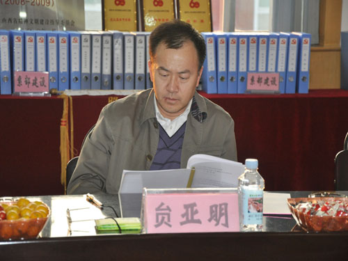 11月5日下午16:00时,以山西省食品药品监督管理局党组成员、总检验师贠亚明为组长的省创建文明和谐单位基层党务工作暨创先争优活动检查验收组一行三人莅临beat365检查指导工作。beat365党委副书记、院长李华荣,党委副书记、纪委书记龚晋文,党委委员、 副院长尹士优,党委委员、副院长胡尔雅,党委委员、副院长张震云,党委委员、组织人事部负责人冯晓中以及相关部门负责人参加了汇报会。