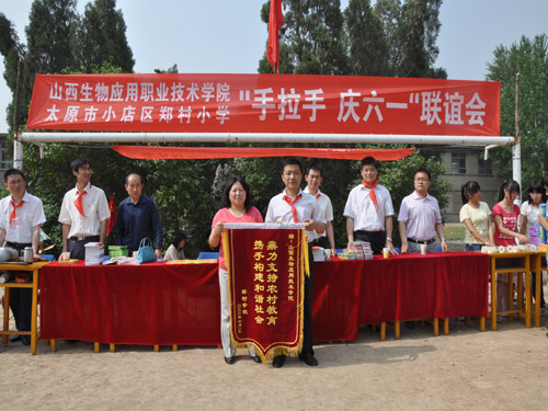 为进一步加强学院与周边村镇的合作共建,为社会主义新农村教育事业奉献爱心,6月1日上午,按照院领导安排,院团委一行12人赴太原市小店区郑村,同郑村小学举行了“手拉手,庆六一”爱心传递联谊活动。院团委书记彭志强、副书记苏珍枝以及各系团总支书记代表学院参加了联谊活动。