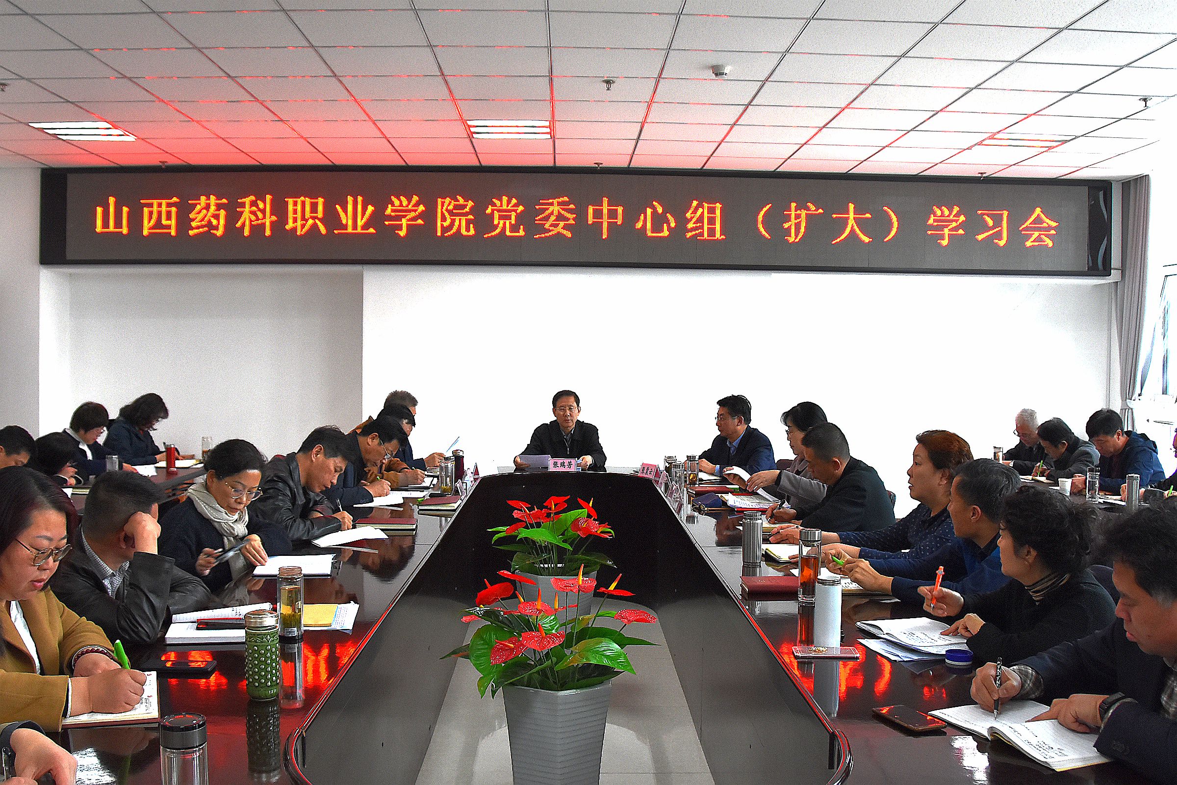 2019年4月4日,院党委召开中心组(扩大)学习会议,学习《中国共产党重大事项请示报告条例》和中共教育部党组《关于加强和改进高校领导干部深入基层联系学生工作的通知》。院党委中心组成员,各党总支、直属党支部书记,各部门、单位主要负责人参会。院党委书记张瑞芳同志主持会议。