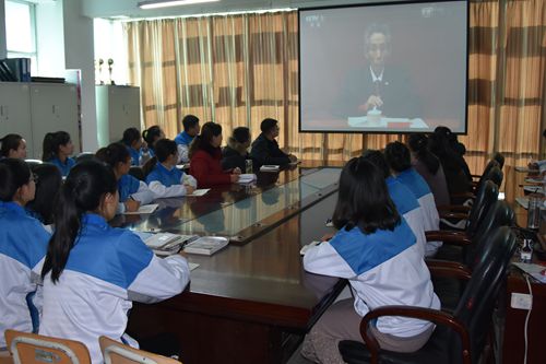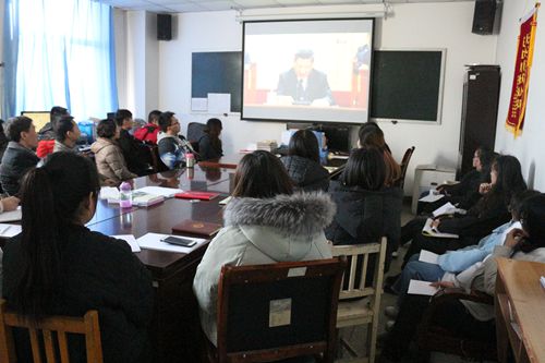在综合楼523会议室,院党委书记张瑞芳同志,党委副书记、院长张震云同志等院领导和机关党总支全体党员一起收看了大会直播。同时,学院其他党总支、直属党支部组织党员干部、广大教师,学工部组织全体学生,院团委组织分团委、青年团干采取不同形式集中收听收看庆祝改革开放40周年大会直播。
