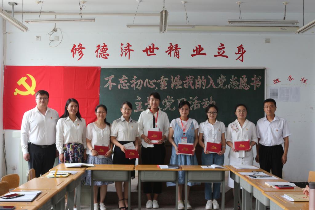 基础部党支部于6月23日上午组织全体党员开展了“不忘初心,重温我的入党志愿书”为主题的党日活动。活动回顾当年向党组织提交入党申请的场景,分享重温入党志愿书心得,认真思考“初心是什么,使命干什么,奋斗比什么”。