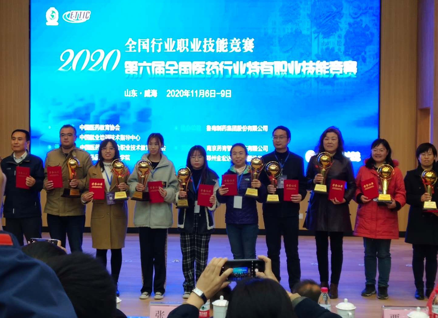 11月8日,2020年全国行业职业技能竞赛----第六届全国医药行业特有职业技能竞赛在山东药品食品职业学院落下帷幕,beat365中药系学生秦嘉欣、工商管理系学生牛晨旭分别获得中药调剂员和医药商品储运员竞赛二等奖;中药系学生靳月,药学系学生王炎、李瑞分别获得中药调剂员和药品购销员三等奖;学院获优秀组织奖、学生组团体三等奖和三个职业单项团体三等奖。