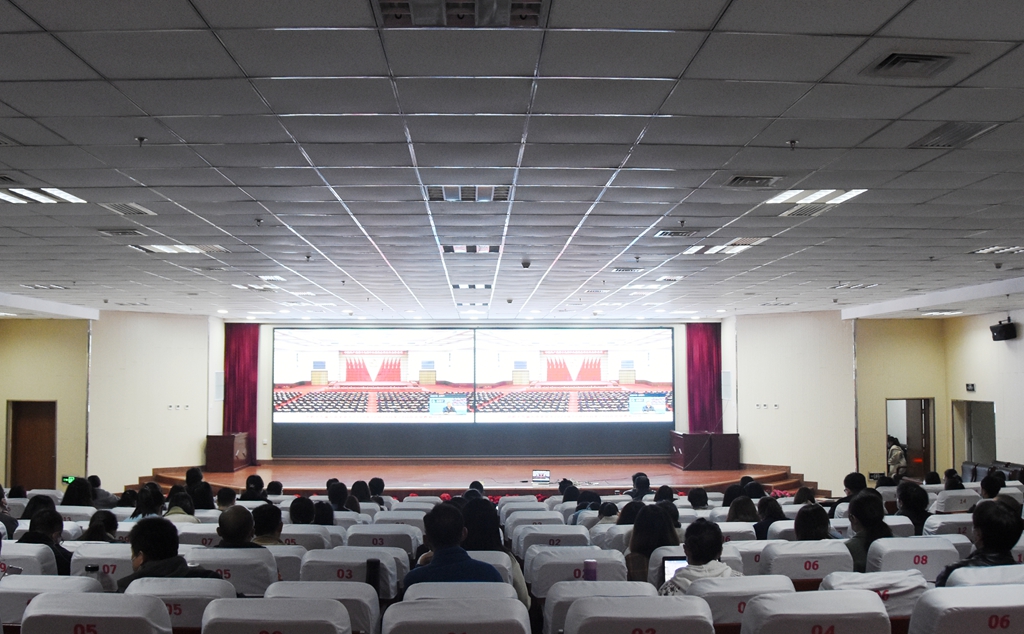 为深入学习宣传贯彻党的十九届五中全会精神,11月16日上午,beat365在综合楼一层报告厅集中组织收看“省委宣讲团成员、省委教育工委书记、省教育厅党组书记、厅长吴俊清作的学习贯彻党的十九届五中全会精神宣讲报告会直播”。院领导班子成员,各党总支、直属党支部书记、各党支部书记,全体思政课教师、辅导员、学生代表收看了报告会直播。