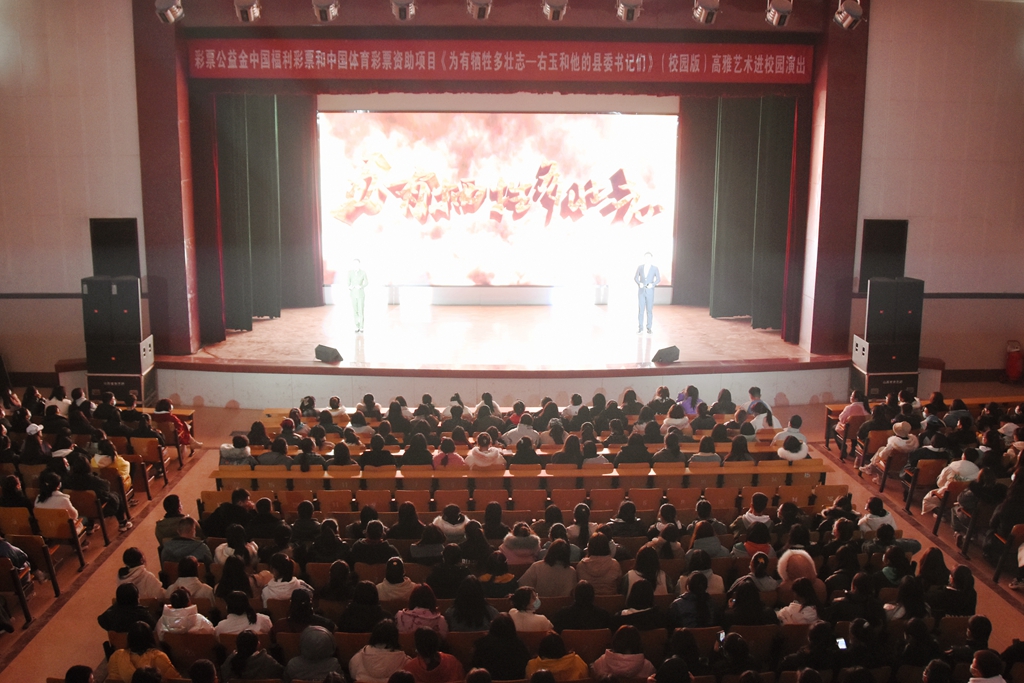 2020年高雅艺术进校园活动专场演出在beat365大礼堂精彩上演。由山西省曲艺团精心编排的《为有牺牲多壮志-右玉和她的县委书记们》、《初心之路》情景剧为观众呈现了两台三晋风格浓郁、历史情怀深厚的红色文化大餐。学院1200多名师生共同观看了演出。