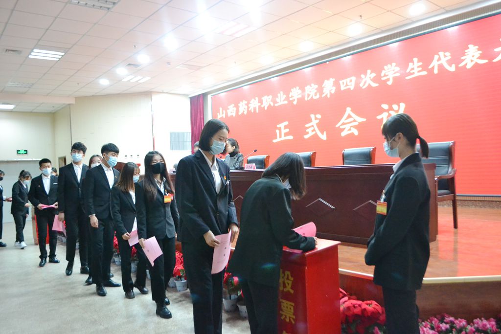 院学生会负责人张玉龙同学向大会作了题为《坚定信念,勇于革新,团结凝聚青年学子放飞青春梦想,为药院贡献青春、智慧和力量》的工作报告,对第三次学生代表大会以来做的工作做了总结,并探索和规划了对今后一段时期学生会的工作目标和任务: 高举习近平新时代中国特色社会主义思想伟大旗帜,深入贯彻落实习近平总书记关于青年工作的重要思想和关于教育的论述,聚焦全国学联二十七大工作部署和共青团山西省委“四先四助两育人”的工作体系,学思践悟坚定理想信念,奋发有为践行初心使命,砥砺奋进凝聚青春力量,不负韶华蹚出转型新路,为实现中华民族伟大复兴的中国梦不懈奋斗!