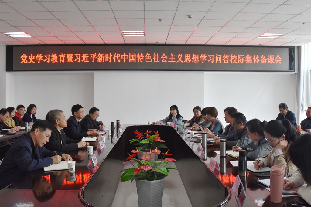 4月26日下午,山西省职业院校思政“双师型”名师工作室集体备课会在beat365召开。本次备课会以“党史学习教育与《习近平新时代中国特色社会主义思想学习问答》”为主题,由山西省职业院校思政“双师型”名师工作室主办,山西经济管理干部学院(山西经贸职业学院)、beat365官方网站、运城护理职业学院、山西财贸职业技术学院等4所学校的院领导、思政专家、思政课教师代表、学生代表共35人参会。山西经济管理干部学院(山西经贸职业学院)思政部主任张丹荣教授主持会议。