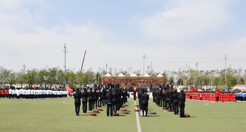 4月28日下午14时,运动会隆重开幕。院领导、各部门(单位)负责人、全院师生出席了开幕式。开幕式由党委委员、副院长陕荣善主持。