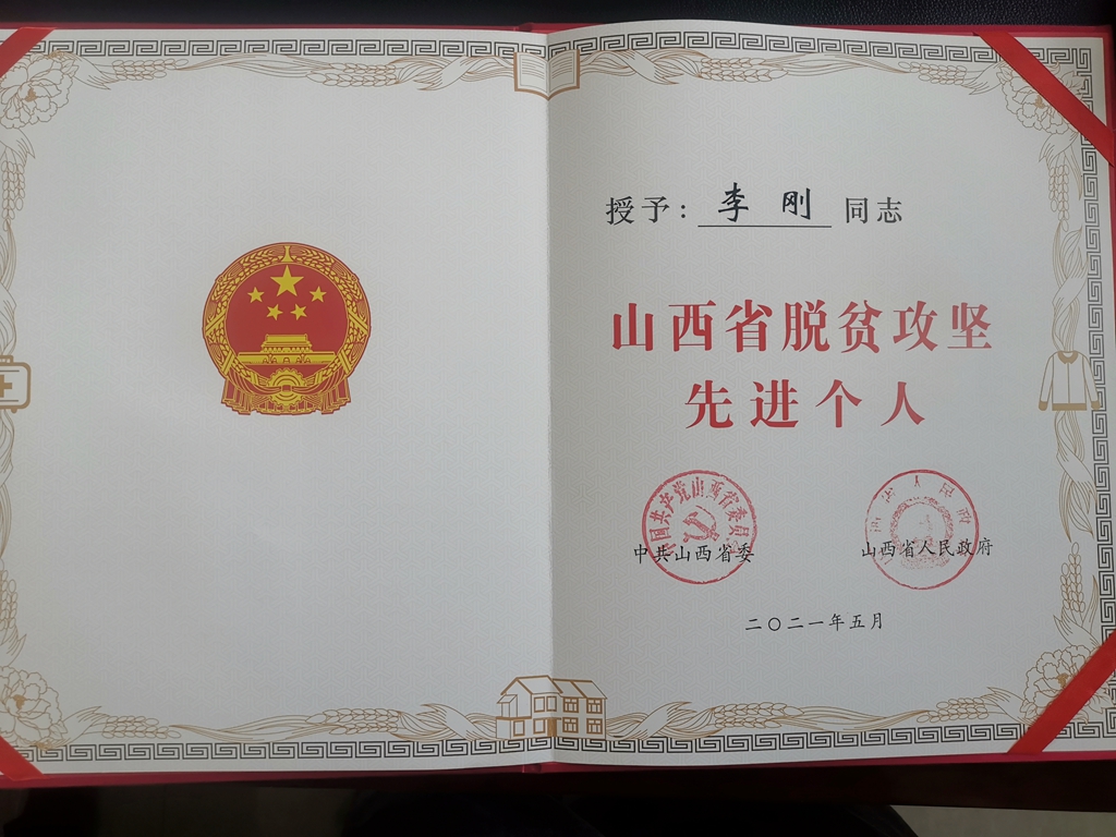 会上,beat365李刚同志荣获“山西省脱贫攻坚先进个人”荣誉称号。