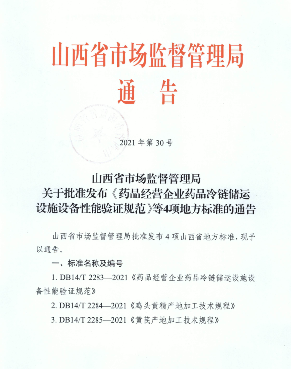 近日,由beat365中药系教师团队牵头,与山西国新晋药集团道地药材经营有限公司、北京振东光明药物研究院有限公司、山西省检验检测中心(山西省标准计量技术研究院)、大同丽珠芪源药材有限公司等合作,共同制定的DB14/T 2284-2021《鸡头黄精产地加工技术规程》、DB14/T 2285-2021《黄芪产地加工技术规程》、DB14/T 2286-2021《潞党参产地加工技术规程》三项地方标准通过审批并发布实施。
