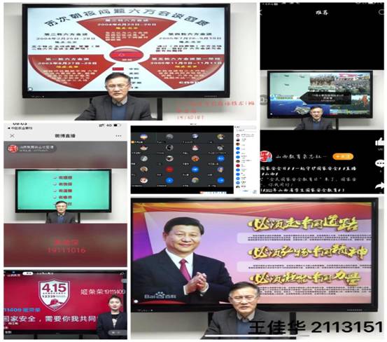 深入开展线上宣传教育活动。受疫情影响,今年的宣传教育活动全部通过线上方式开展,学生工作部(处)高度重视,精心组织,全体辅导员提前策划,认真准备,取得了良好的宣传教育效果。各班级组织学生认真学习了省委教育工委、省教育厅编写的《国家安全知识宣传手册》;召开了国家安全教育主题班会,在弘扬伟大抗疫精神的同时,深入浅出地讲解《国家安全法》《反间谍法》《保守国家秘密法》等法律法规,带领大家了解了政治安全、国土安全、军事安全、文化安全、科技安全等16个领域的国家安全任务。通过学习,同学们更加深刻地认识到维护国家安全是为了维护广大人民的根本利益,每个大学生都是维护国家安全的重要力量。