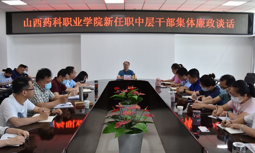 6月1日下午,学院在综合楼523会议室召开新任职中层干部集体廉政谈话会,对新提拔的27名中层干部进行集体谈话。院党委委员、纪委书记沈宝荣出席会议并讲话,会议由院纪委副书记柴红萍主持。