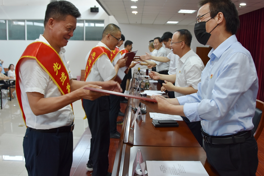 与会领导为受表彰的先进集体和先进个人颁奖。