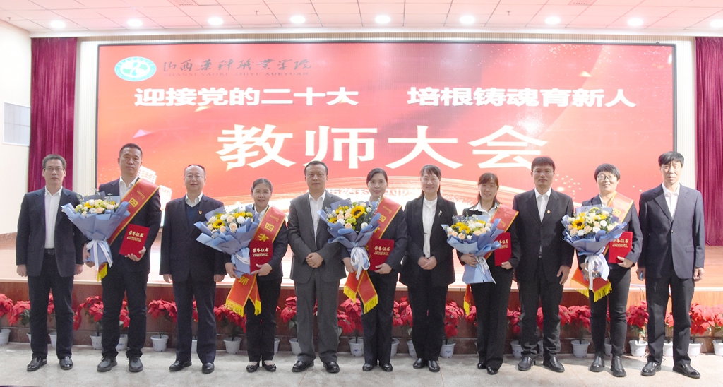 党委书记王旭作了题为《坚守“立德树人”初心 争当“四有”好老师》的重要讲话,他高度评价了山西药科建校65年来尤其是近3年来一批又一批药院教师对学院发展作出的突出贡献。他指出,山西药科的历史是全体教师共同铸就的,山西药科事业发展的每一次突破、每一个成就,都源于教师们的无私、奉献和敬业。教师是学院的办学主体和灵魂,凝聚着学院的核心竞争力,直接决定着学院的办学水平,他希望全体教师坚守“立德树人”初心,做有理想信念、有道德情操、有扎实学识、有仁爱之心的“四有”好老师。