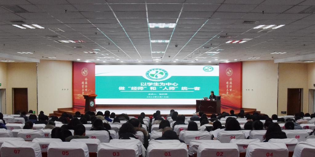 为进一步提升教职工道德素养与专业水平,规范教职工教学行为,2月16日上午,院党委副书记、院长张轩萍为全体教职工作了题为《以学生为中心,做“经师”与“人师”统一者》的专题培训,培训会由院党委委员、副院长刘志伟主持。