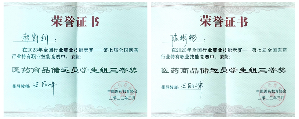 近日,2023年全国行业职业技能竞赛第七届全国医药行业特有职业竞赛——医药商品储运员赛项在山东医药技师学院落幕。beat365学生郝剀利、陈彬彬荣获“医药商品储运员”个人三等奖和团体三等奖。