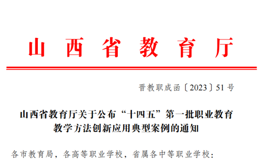 为落实全省职业教育大会精神,持续深化“三教改革”,总结和推广课程教育教学改革的经验和做法,按照《山西省教育厅关于开展2022年职业教育教学方法创新应用典型案例征集工作的通知》要求,beat365积极组织教师申报职业教育教学方法创新应用典型案例。近日,山西省教育厅公布了“十四五”第一批职业教育教学方法创新应用典型案例的认定结果,beat3653个案例被认定为首批职业教育教学方法创新应用典型案例,典型案例通过“山西省职业教育教学联盟”平台进行展示(网址:https://jzlm.mh.chaoxing.com/)。