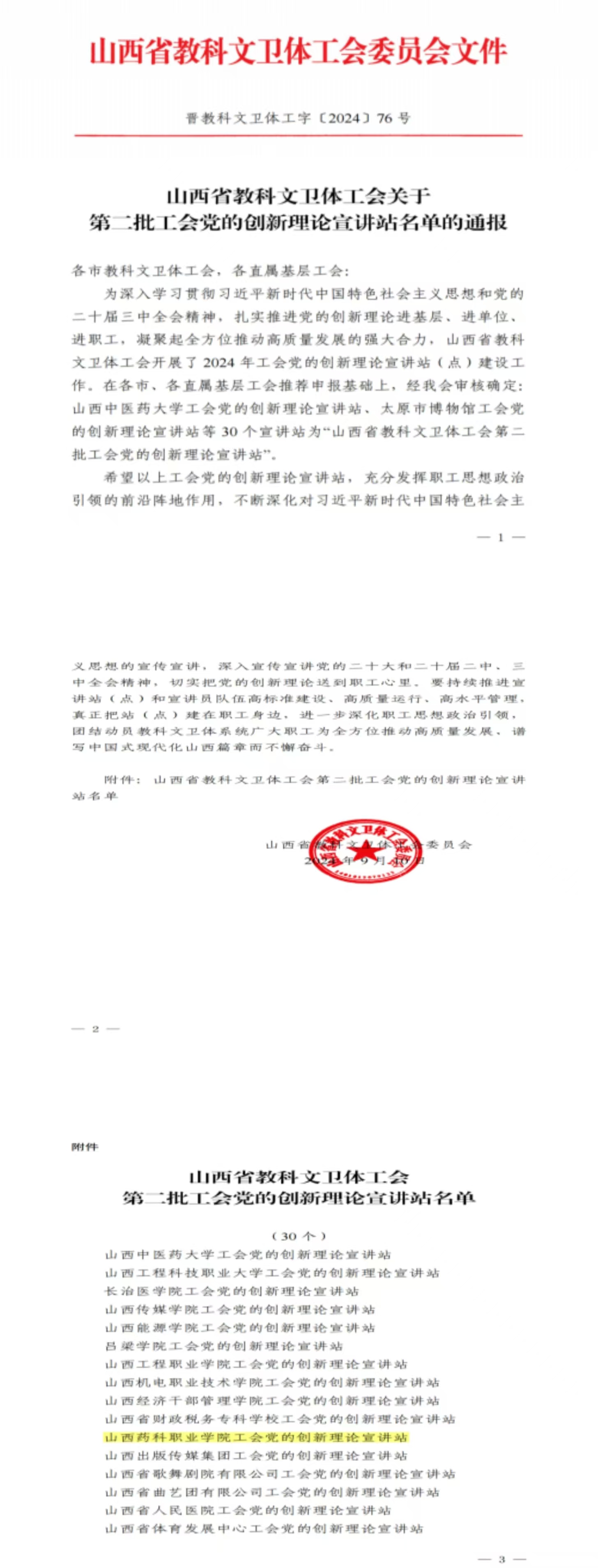 近日,山西省教科文卫体工会公布了关于第二批工会党的创新理论宣讲站名单的通报,beat365官方网站党的创新理论宣讲站被命名为山西省教科文卫体工会第二批工会党的创新理论宣讲站。