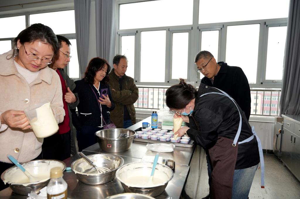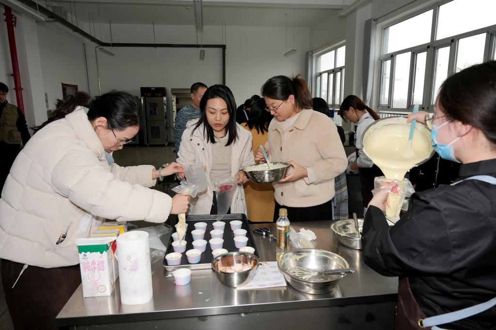 在“药膳甜心 焙感幸福”烘焙活动专场,教职工们化身“烘焙大师”,亲手制作蛋糕、黑芝麻贝果、南瓜土司等美味甜品,让“药食同源”的理念化作舌尖上的温暖关怀,在甜蜜的氛围中享受制作的乐趣。