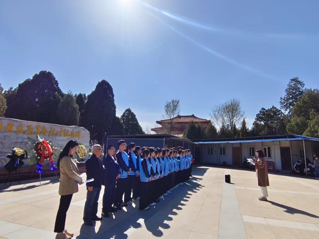 活动在庄严的国歌声中拉开序幕。学生代表向烈士纪念碑敬献花圈,全体师生肃立默哀。现场全体党员重温入党誓词,铿锵誓言在陵园上空回荡。
