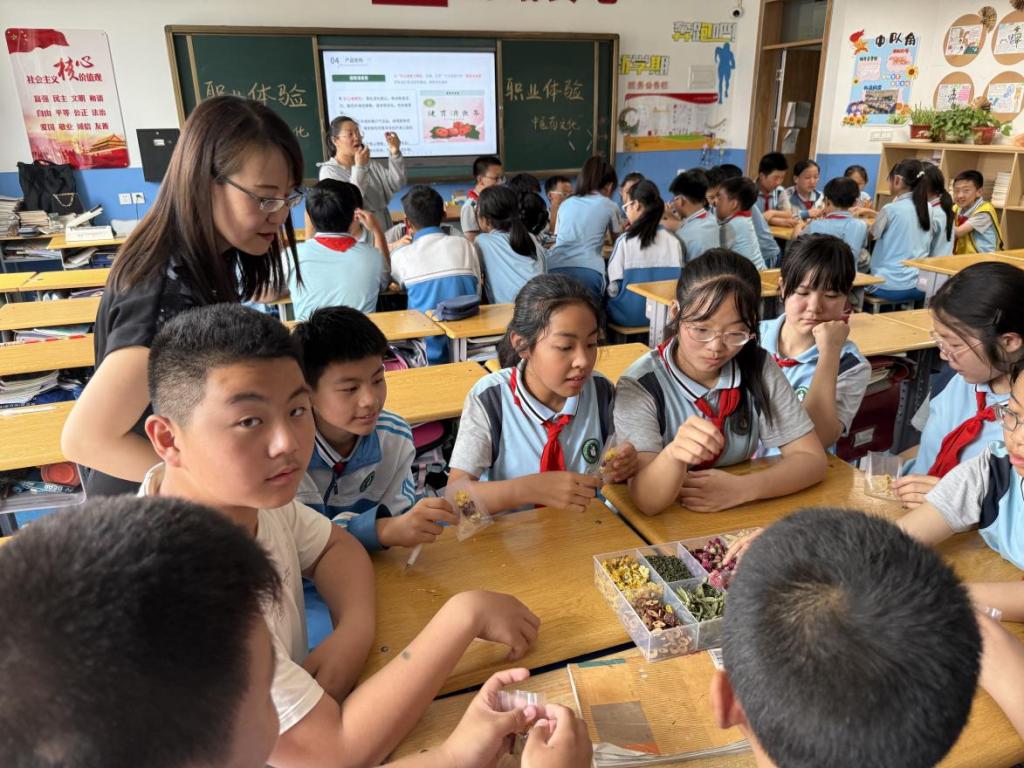 在北营小学,beat365专业教师围绕“药茶养生”“药膳搭配”“非遗中国结”三大主题,动员学生动手实践,领略古方今用的智慧与传统手工艺的魅力。