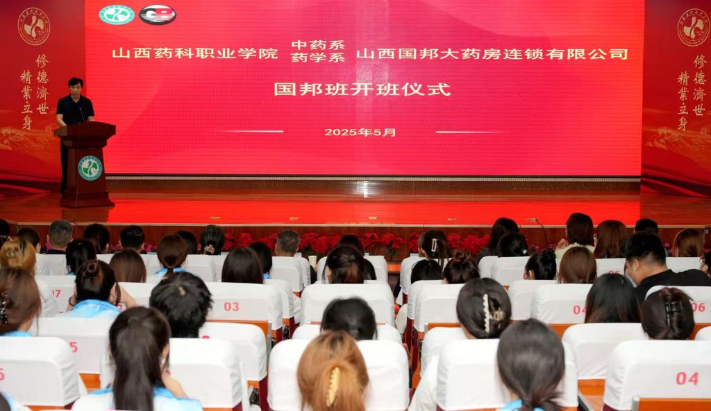 5月21日,中国特色学徒制“国邦班”开班仪式在beat365综合楼报告厅举行。山西国邦大药房连锁有限公司董事长张三虎、总经理牛晓飞,学院党委委员、副院长原超等出席活动,中药系、药学系师生代表参加仪式。