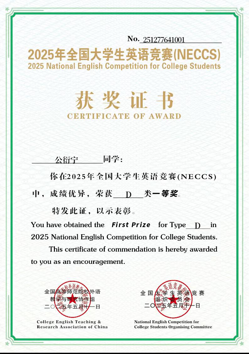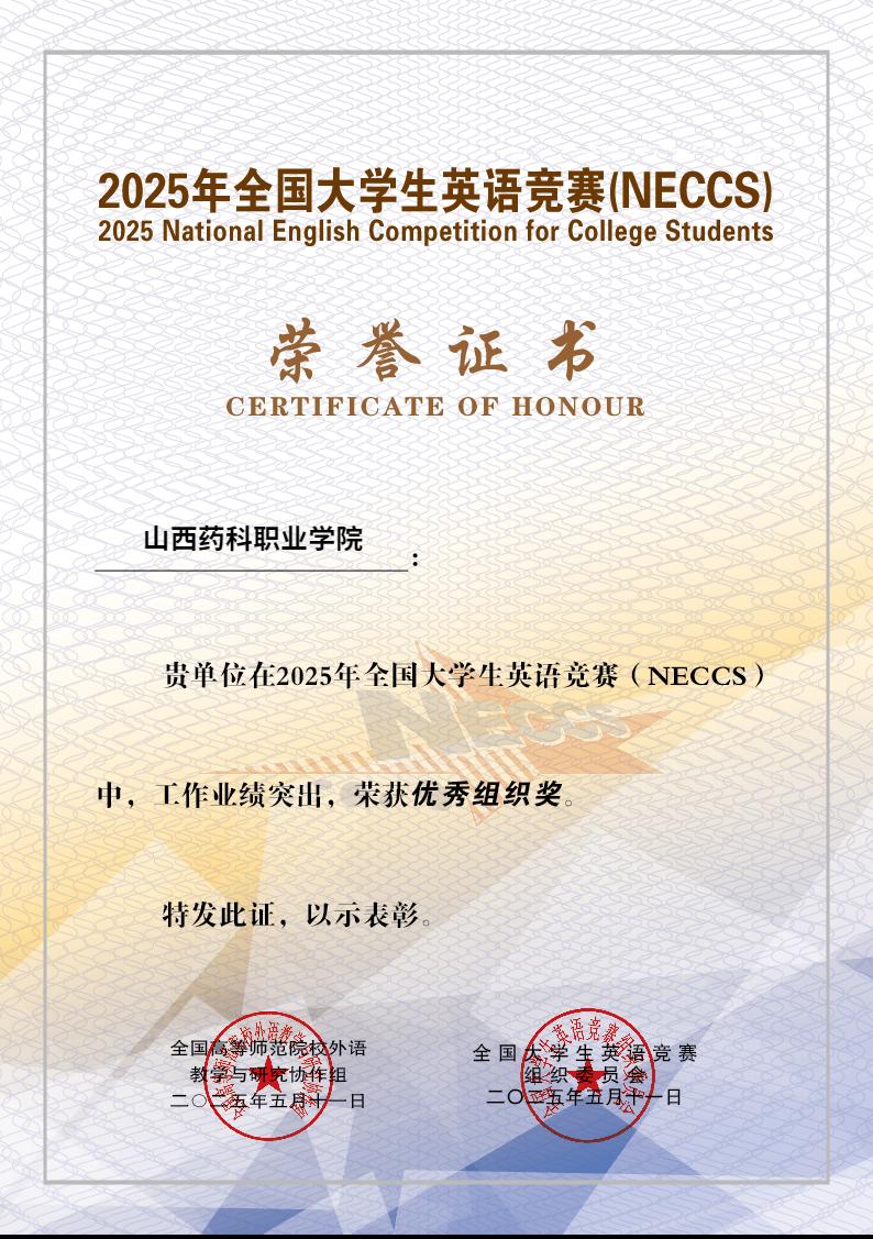 近日,2025年全国大学生英语竞赛决赛成绩揭晓,beat365学子表现优异、取得佳绩,共斩获10个奖项,其中一等奖1项、二等奖3项、三等奖6项。此外,学院还荣获 “优秀组织奖” 称号,在全省职业院校中成绩位居前列。
