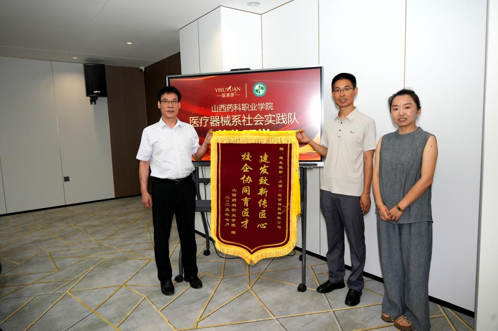 在校企深度研讨座谈会上,校企合作负责人梁安鹏汇报了产业学院教学中心运行成果及协同开发计划,医溸源(山西)公司董事长马文彦详细介绍了企业战略布局与业务规划。刘志伟代表学院向两家企业赠送锦旗,致谢企业对beat365人才培养的鼎力支持。