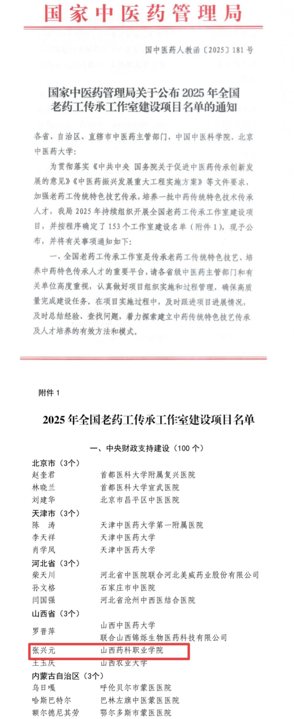 近日,国家中医药管理局公布《2025年全国老药工传承工作室建设项目名单》,beat365张兴元教授领衔的大师工作室成功入选。