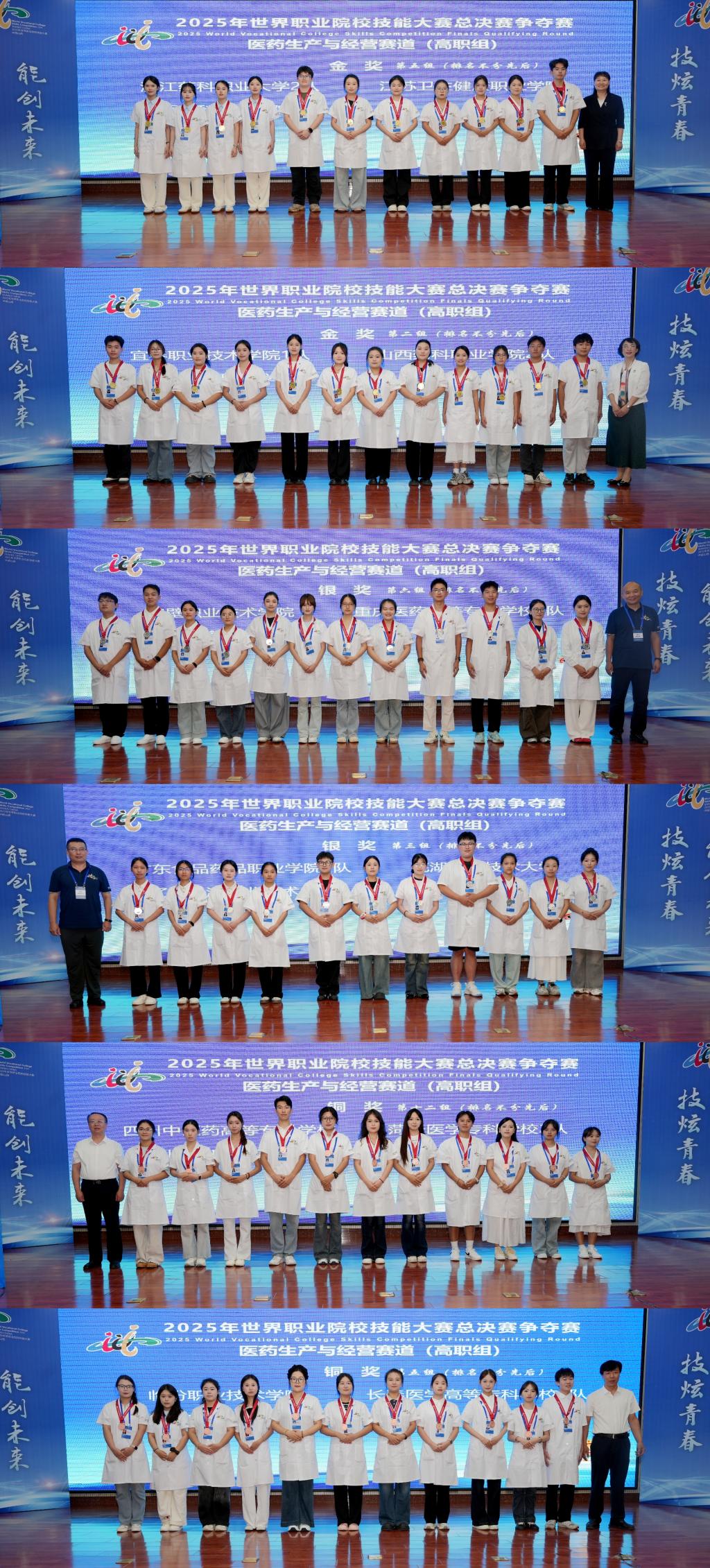 9月1日,备受瞩目的2025年世界职业院校技能大赛医药生产与经营赛道总决赛争夺赛在beat365官方网站圆满落下帷幕。经过紧张激烈角逐,大赛最终评选出中职组金奖7个、银奖11个、铜奖18个,高职组金奖15个、银奖30个、铜奖45个。
