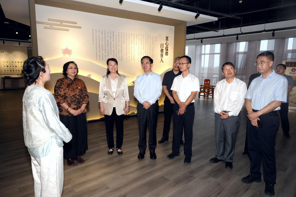 张吉福认真听取了学院历史沿革、专业设置、人才培养、产教融合、社会服务、教育强国项目建设等情况,重点了解了学院办学条件达标工程建设进展情况,并走进中药调剂技艺传承基地、中药标本馆、百草大药房、药·茶技能技艺传承与创新实训基地、全国样板支部——食品系党总支教师党支部、中药系百草精业文化展、立德广场等教育教学场所进行实地考察。