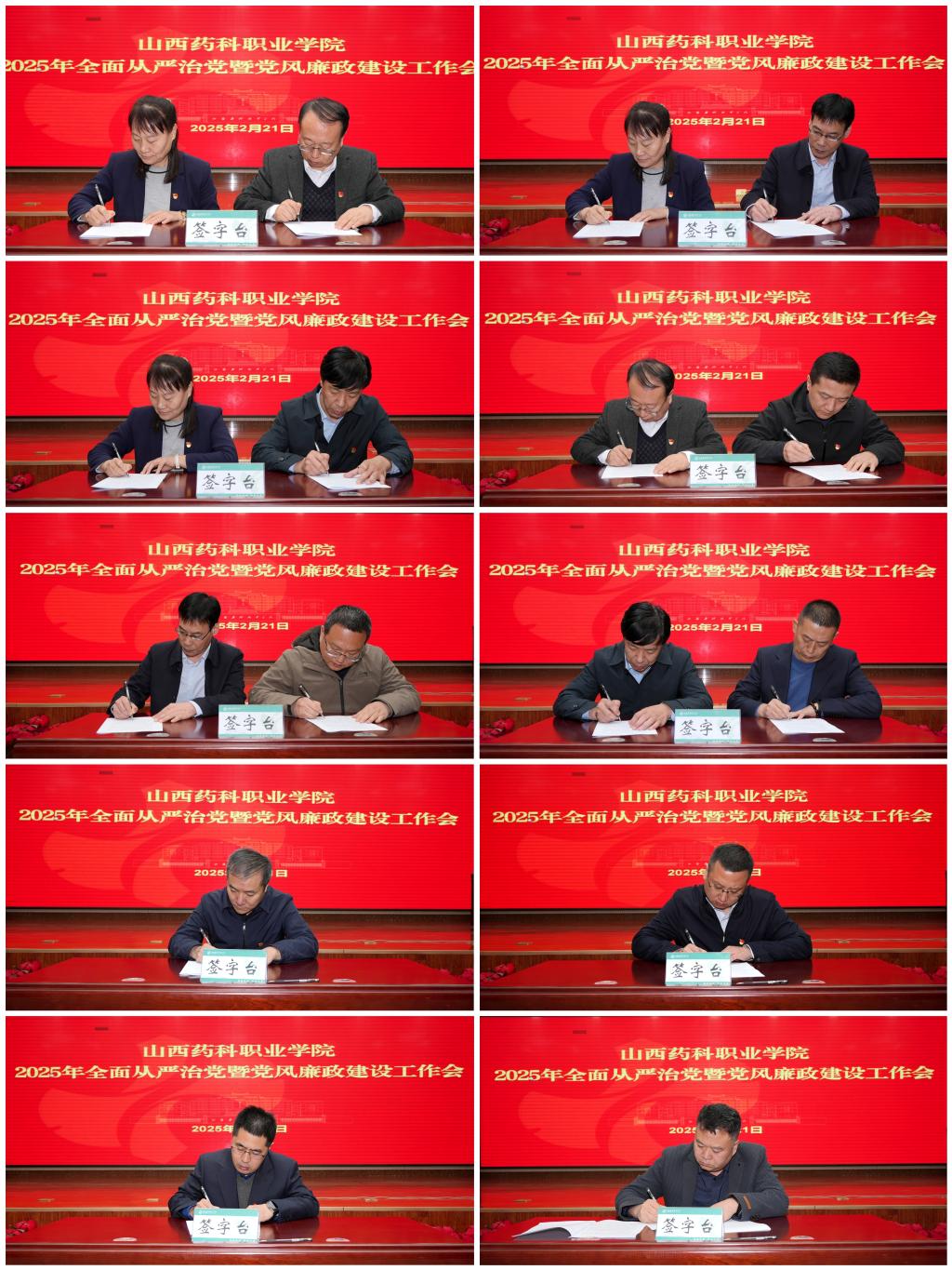 会上,学院党委主要负责同志与领导班子成员,领导班子成员与分管部门、单位负责人分别签订2025年全面从严治党责任书。学院领导班子成员,各党总支书记、直属党支部书记分别就落实2025年党风廉政建设政治责任签订承诺书。
