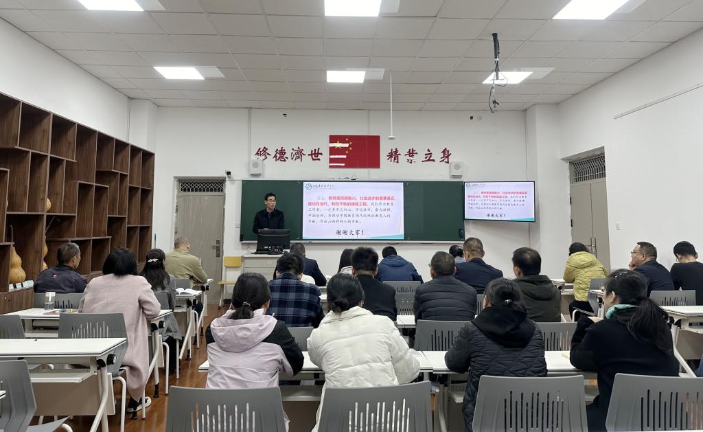 为推动习近平同志《论教育》主题读书活动深入开展,使教务教辅党总支全体党员干部深刻领会习近平同志《论教育》的时代背景、科学体系、精神实质,切实推动习近平同志《论教育》在党总支落地落实。近日,教务教辅党总支邀请思政部主任任俊峰进行了习近平同志《论教育》专题辅导,院党委委员、副院长刘志伟出席指导,党总支全体党员参加。教务教辅党总支书记冯晓明主持专题辅导。