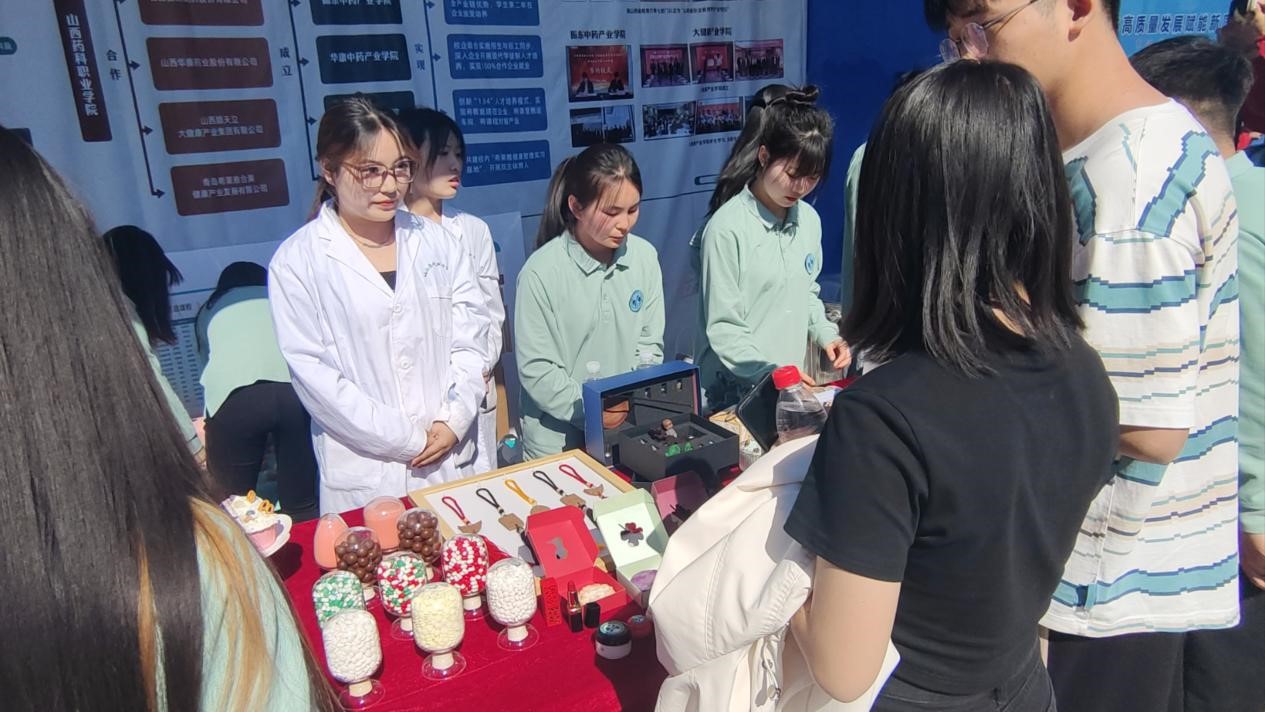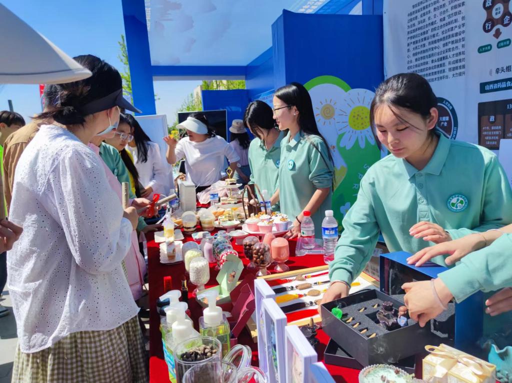 活动现场,学院中药系展示的“药食同源”中草药创意产品,中药茶饮、香牌、十大晋药主题香包和饮片、药香、药皂等各类文创产品博人眼球,尤其是艾条制作的现场展示和教学,更是成为了“靓眼”项目,为活动现场营造了良好氛围。大家纷纷排队参与体验,感受中药传统文化、中药传统技能的独特魅力和博大精深。