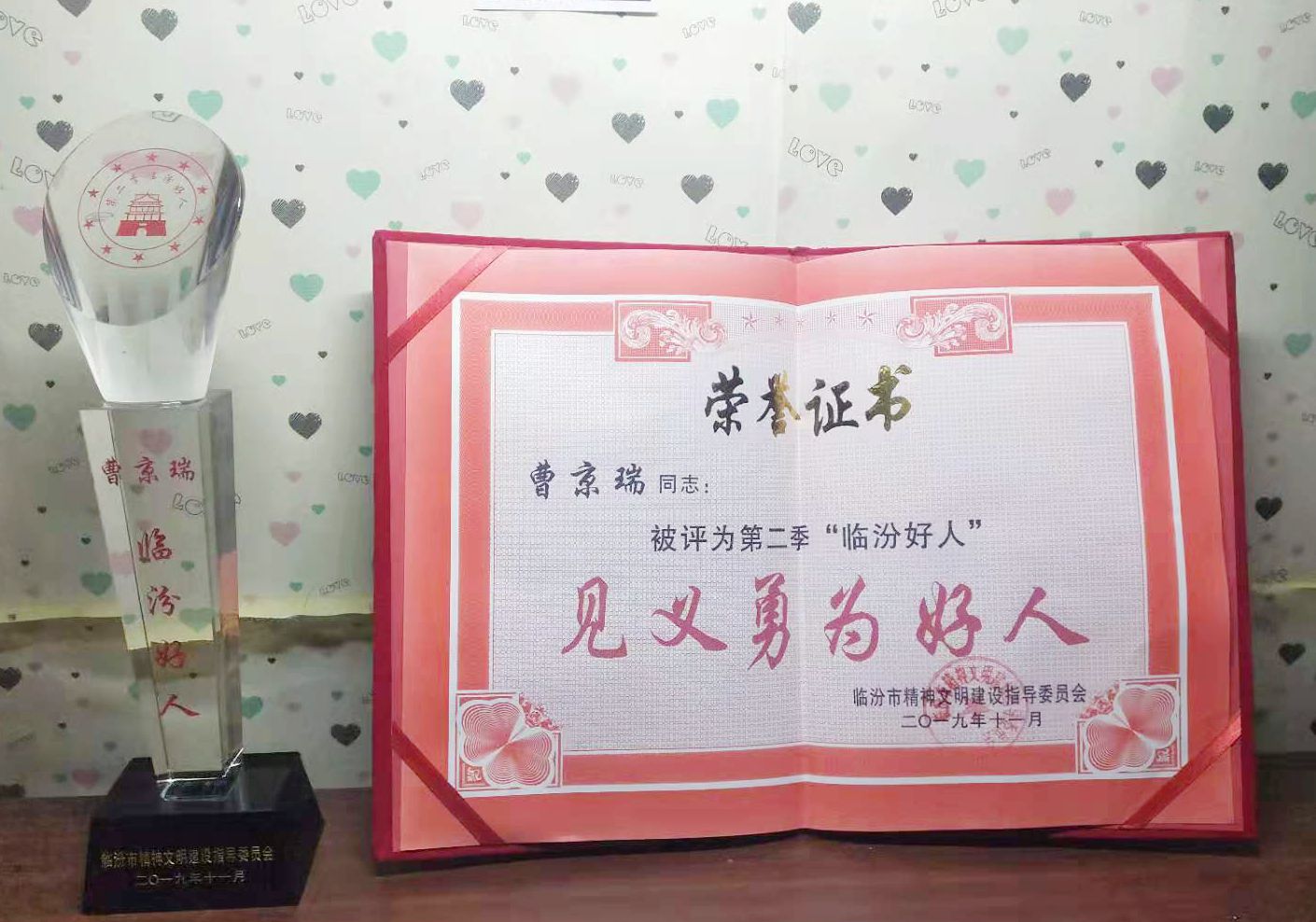 beat365学生曹京瑞荣膺临汾市第二季见义勇为“临汾好人”荣誉称号
