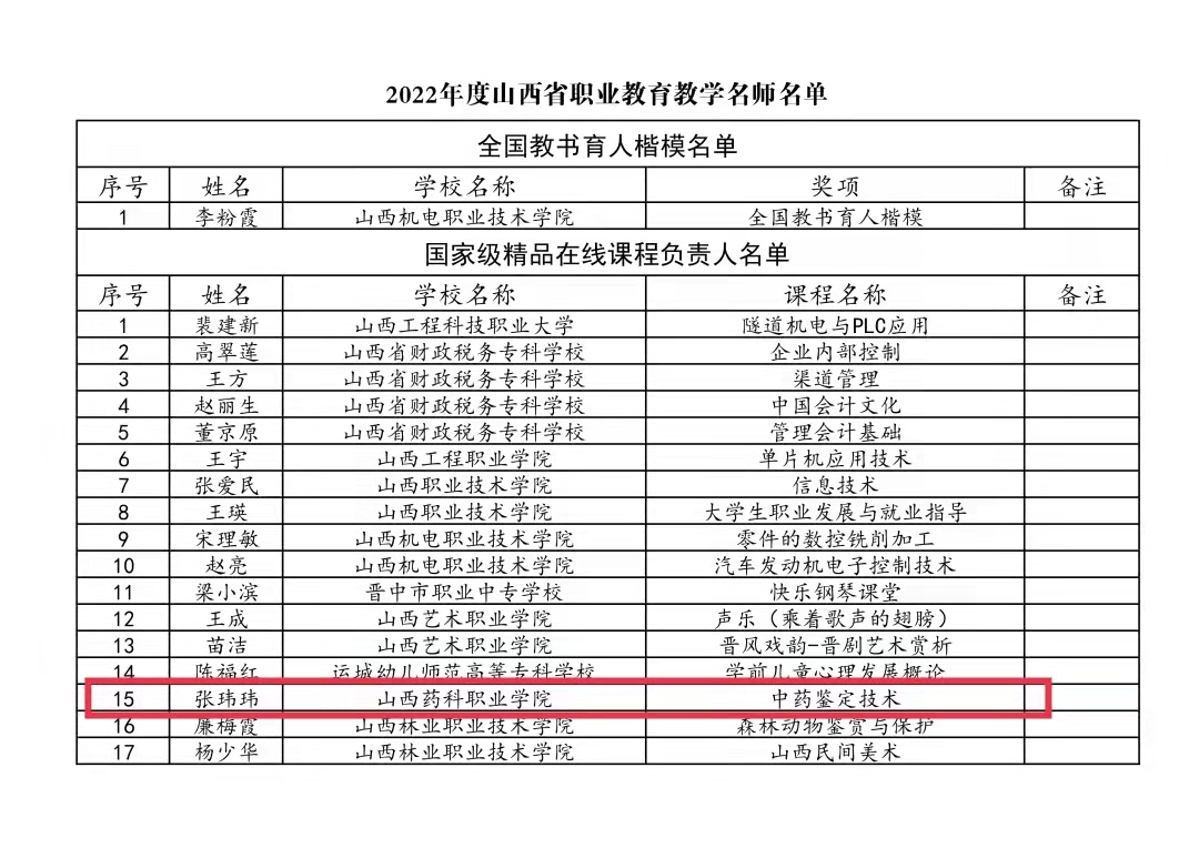 喜讯:beat365张玮玮老师荣获“山西省职业教育教学名师”称号
